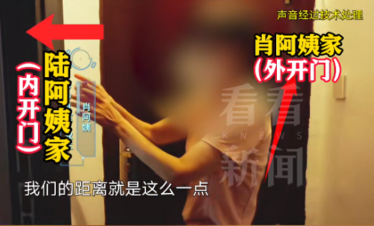 “她把墙敲了把门加宽,现时开门都会撞到门框,手指头都要被夹到!” 肖大姨说,我方眼睛开过刀,年事也大了,陆女士家的防盗门是钢铁材质,门框还越过墙体近5公分,不仅影响通行,还尽是安全隐患。