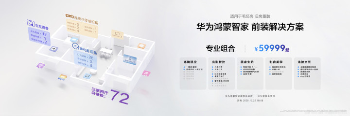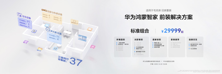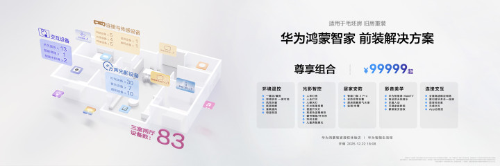 IT之家12月22日音尘,12月22日,华为新品发布会上,华为鸿蒙智家发布多款产物及升级,推出全屋智能套装,售价9999元起。