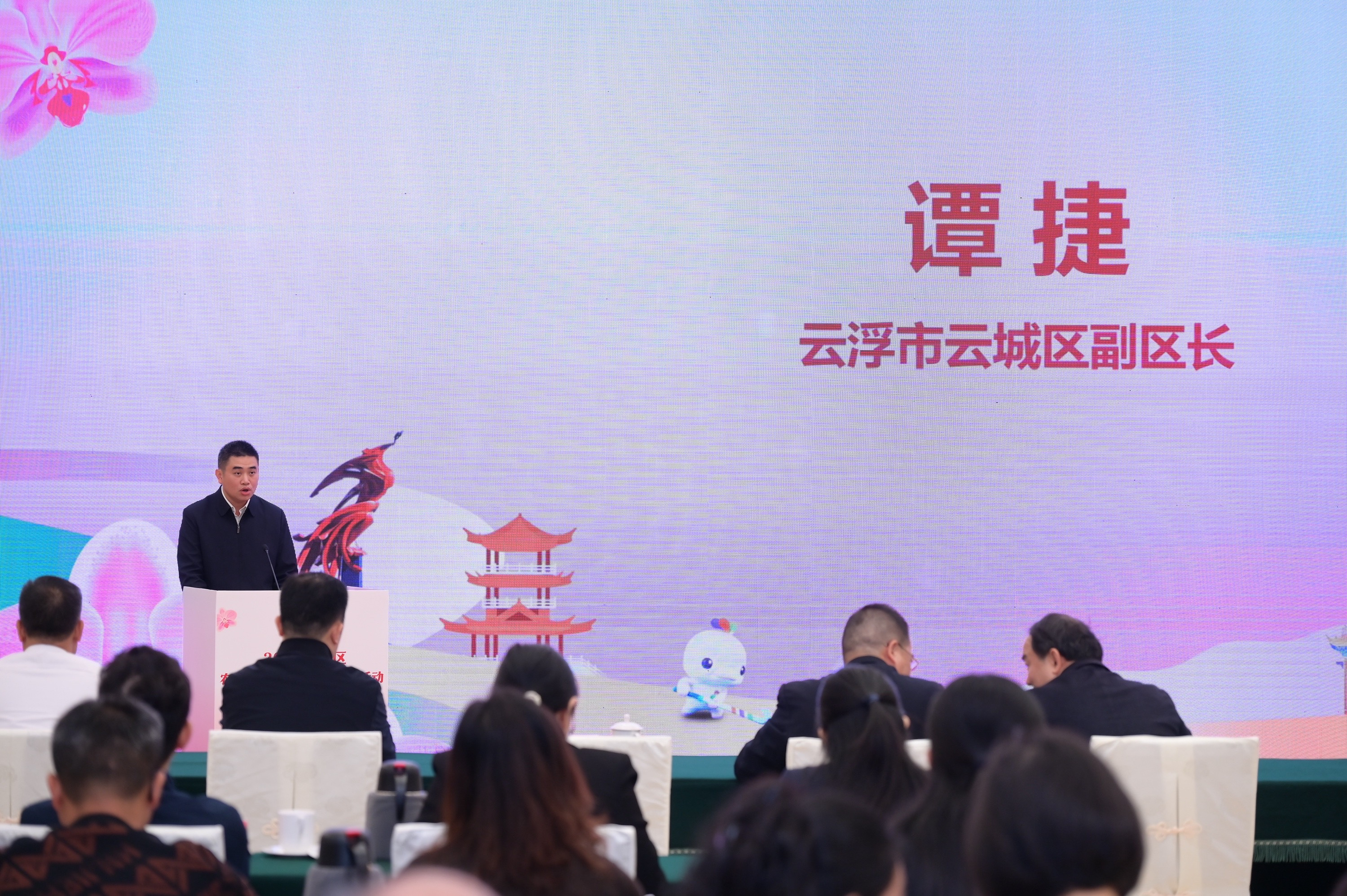 云城区副区长谭捷现场推介。